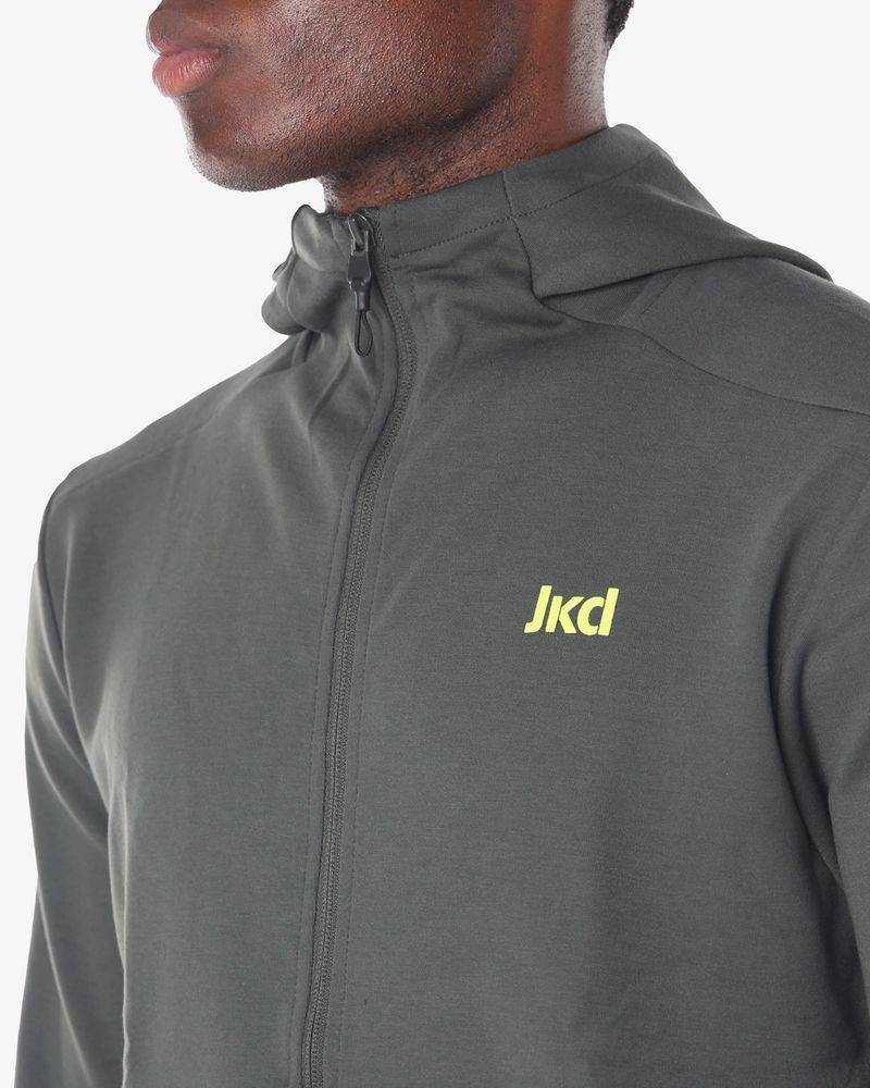 Felpa con cappuccio e zip realizzata in felpa tecnica, tasche laterali con zip e dettagli gommati