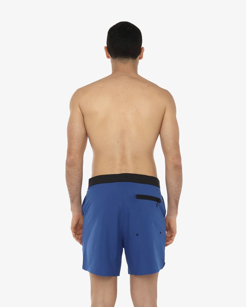 Shorts dalla linea dritta realizzato in tessuto elasticizzato. Regolazone con lacci sul davanti, tasche laterali e tasca incollata sul dietro. slip in rete all'interno