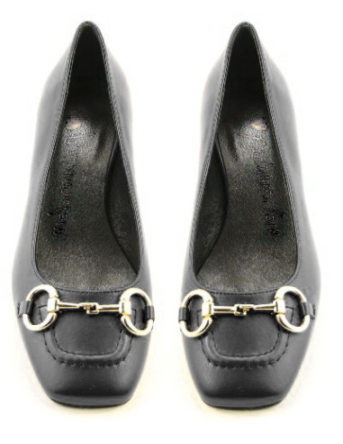 Decolletè artigianale punta semiquadra tomaia in vitello nappato riporto in pelle fodera pelle suola gomma antiscivolo tacco 50mm rivestito