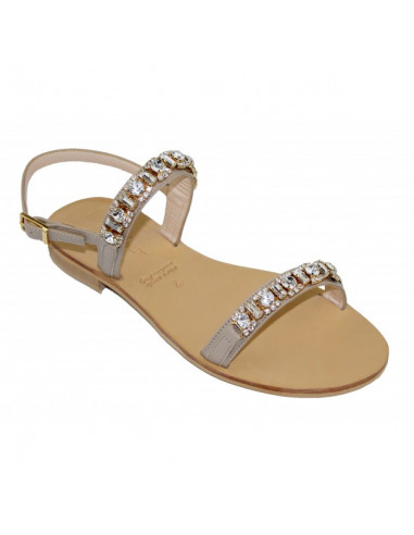 Sandali artigianali gioiello con tomaia in vitello sottopiede in cuoio naturale suola gomma antiscivolo tacco 10mm