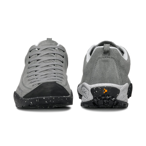 UPPER In new eco-sustainable suede EVOLO®, an innovative production process that respects the environment and circular economy principles, recovering and regenerating suede processing waste and significantly reducing the chemical products without any further addition of chromium, while also cutting down on CO2 emissions and the use of water. Recycled rubber toe cup. LACING Extended Lacing fastening down to the toe taken from the world of climbing, for maximum customisation and a comfortable fit, held in place by holes and eyelets. PFC Free yarn laces. SOLE Presa® URB-03 sole is made of a midsole and an outsole composed respectively of 20% and 20% of recycled material without losing the basic characteristics of comfort and durability.
