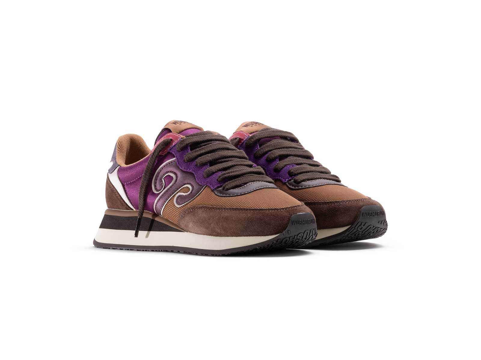Tomaia in camoscio e nylon con dettagli in PU.Logo Ruyi posizionato sulla parte laterale.L’intersuola in EVA con inserto in TPU conferisce leggerezza e ammortizzazione per un maggiore comfort.Il battistrada con motivo zig zag in gomma garantisce trazione e resistenza.Il sottopiede interno è stato appositamente studiato e realizzato con una schiuma per assicurare una comodità assoluta.